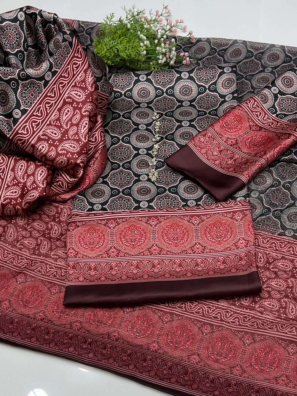 Ajrak Print 3PC Digital Printed Shamooz Silk Suit