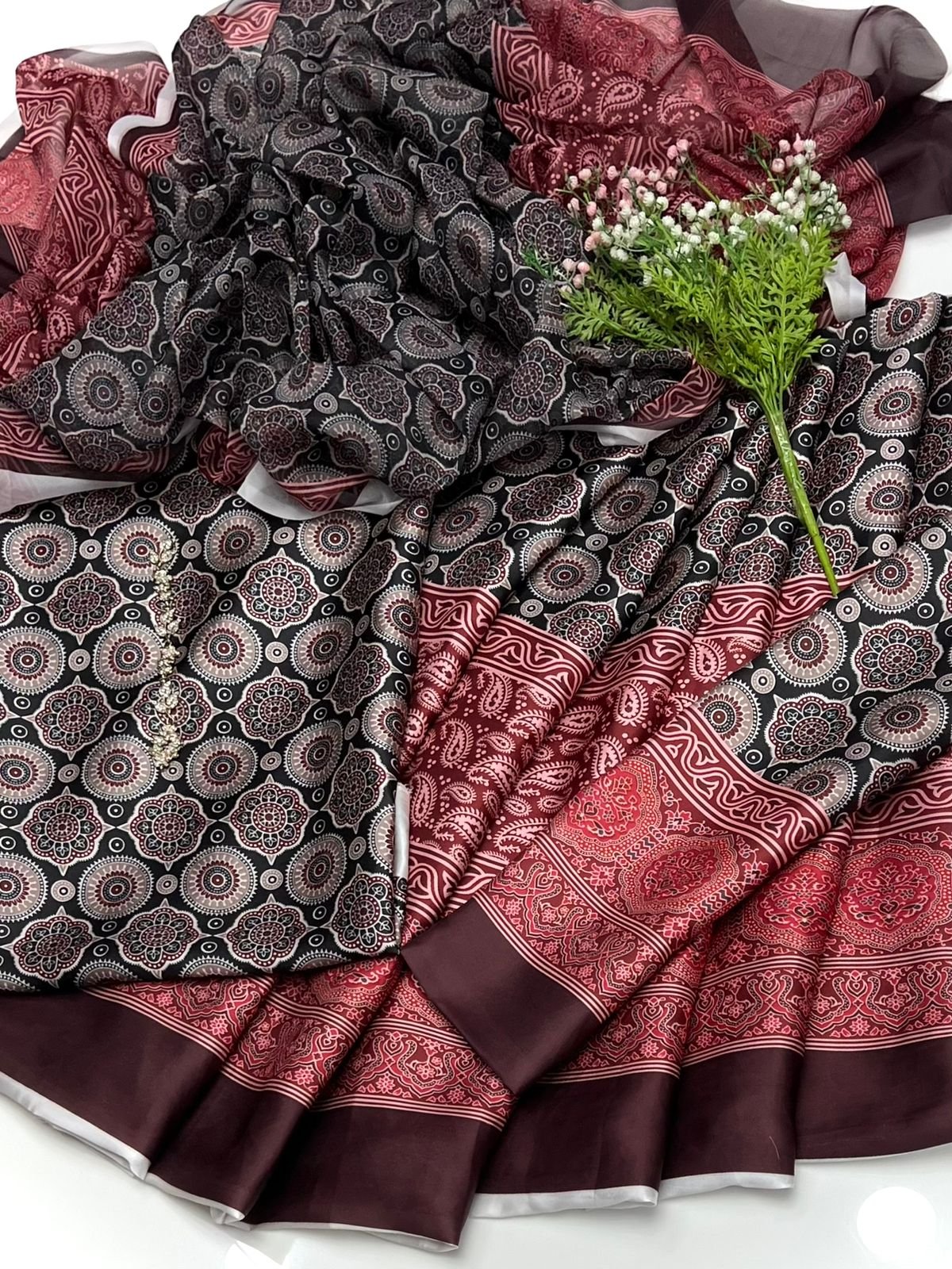 - Digital printed silk dupatta enhancing the cultural and festive appeal