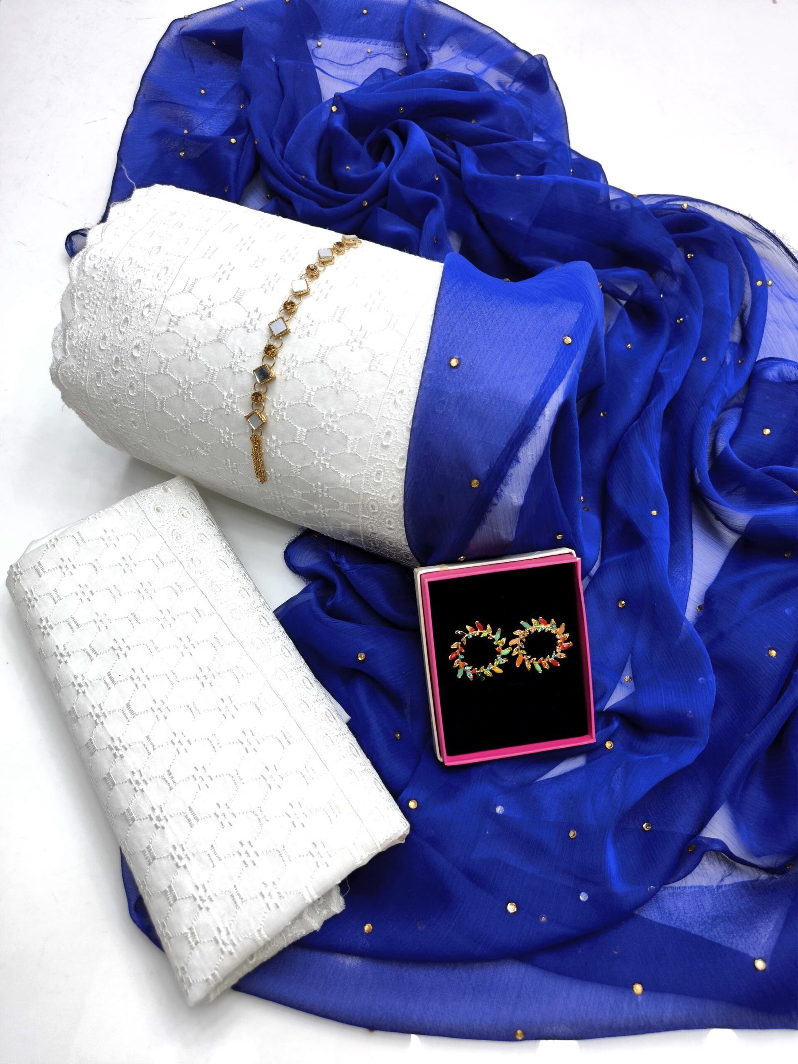 - 🧣 Shiffon Dupatta with Bindi Work All Over – light, airy & festive
