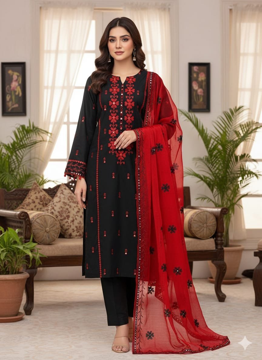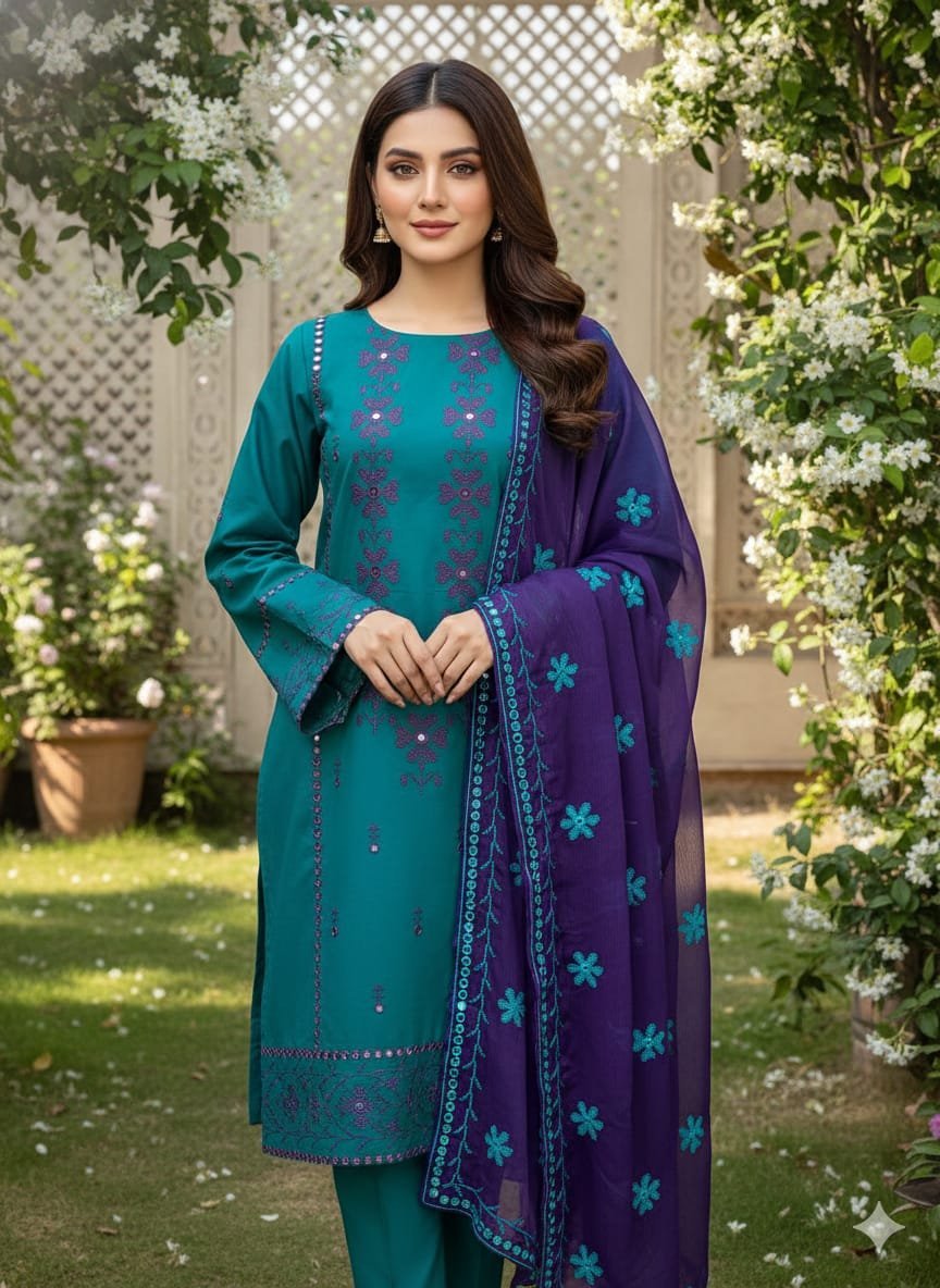 - 👗 Elegant 3 Piece Lawn Cotton Dress