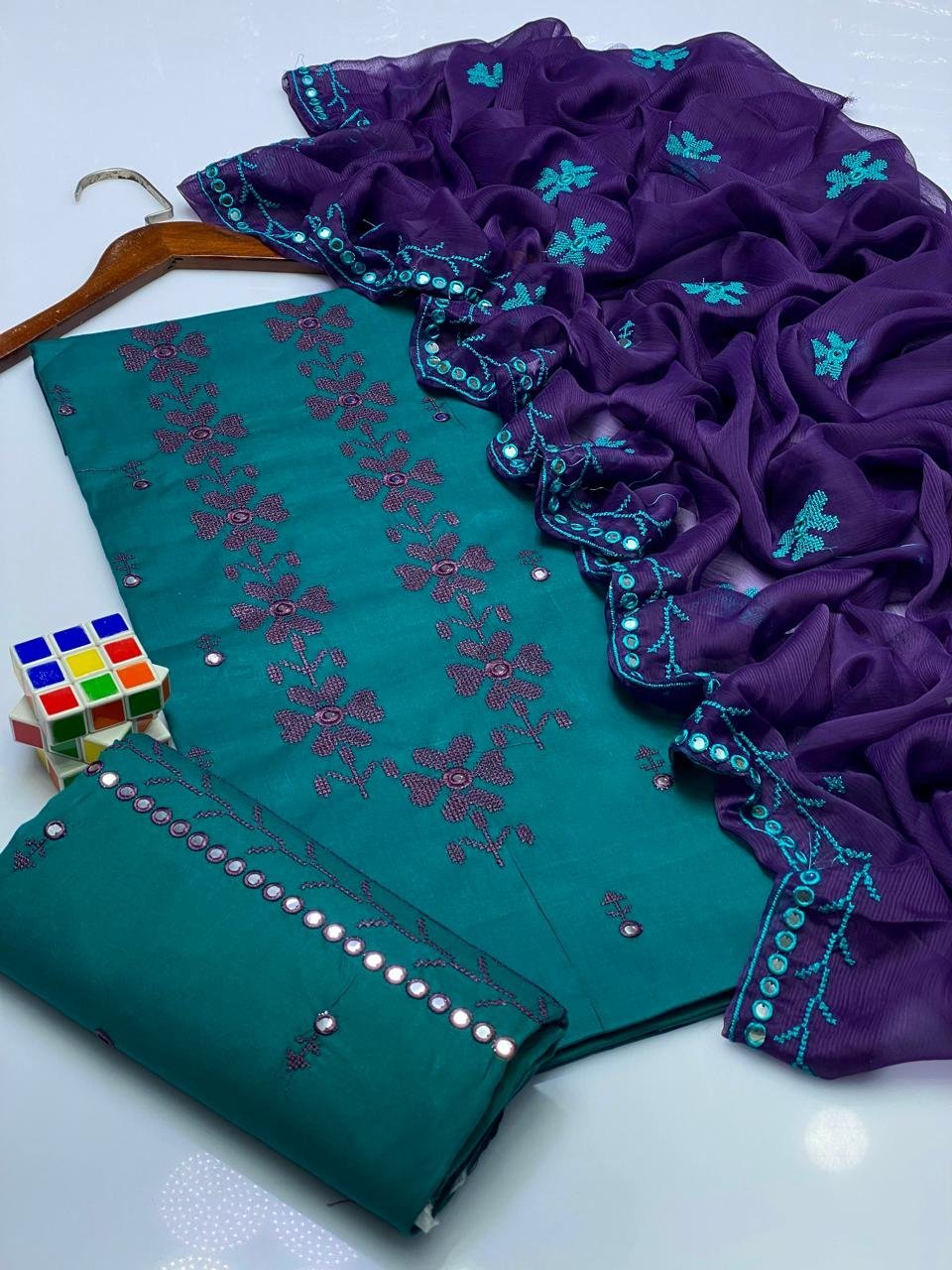 - 🌸 Chiffon Dupatta with matching 9mm mirror embroidery