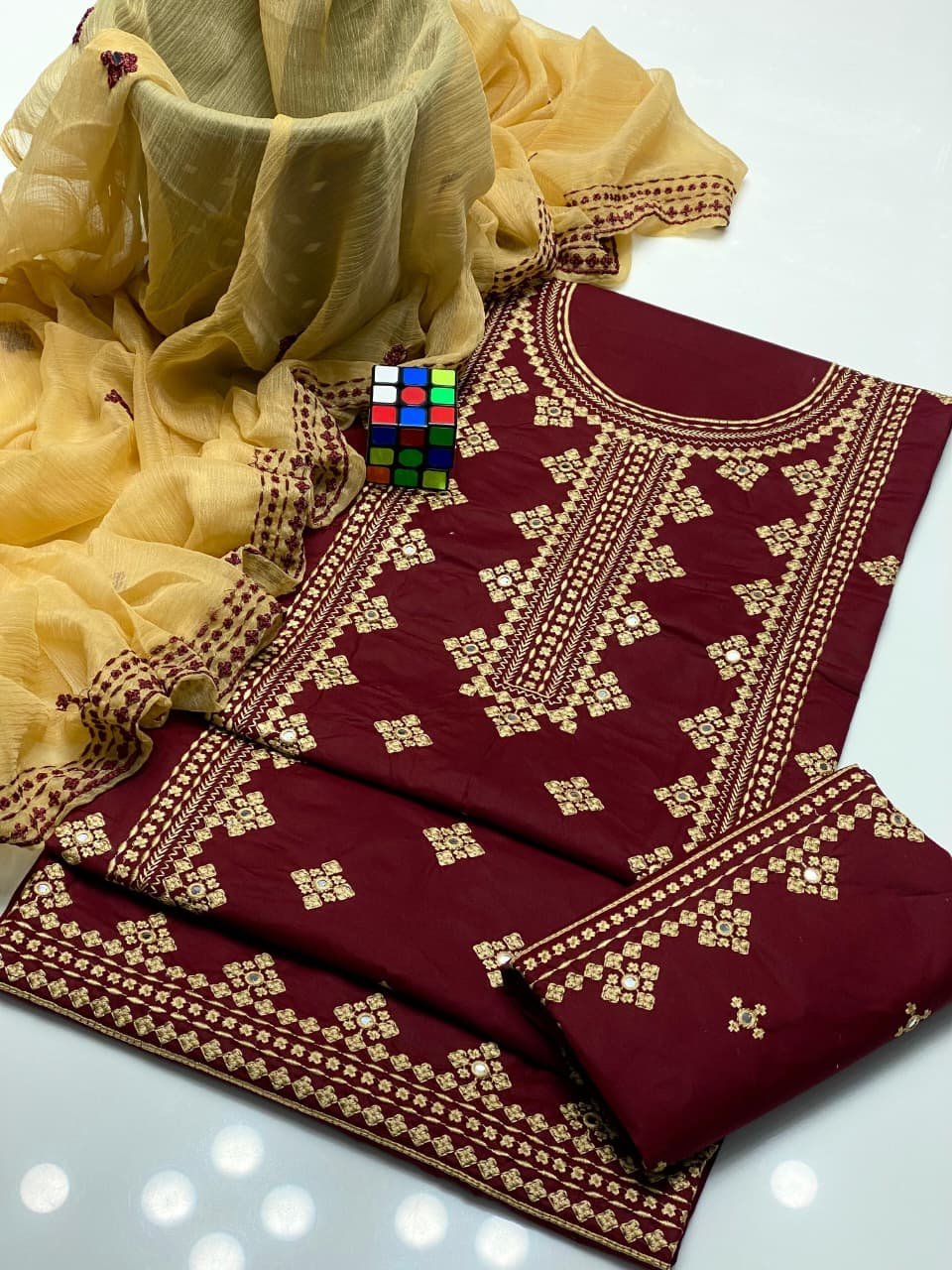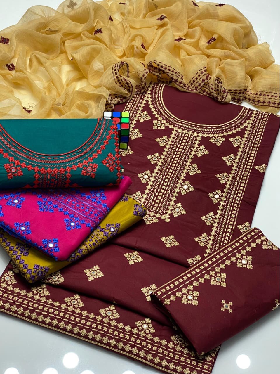 • 🧣 Dupatta: Chiffon Heavy Embroidery 🪡
