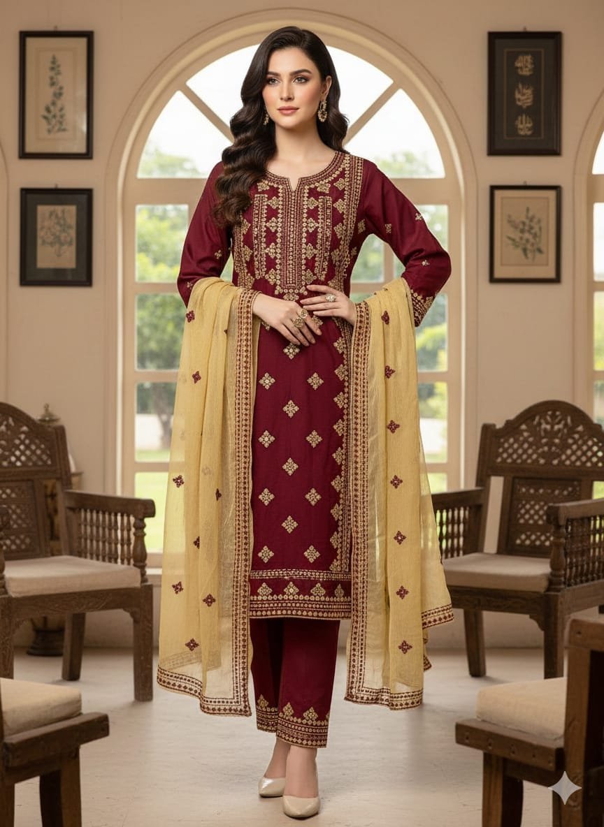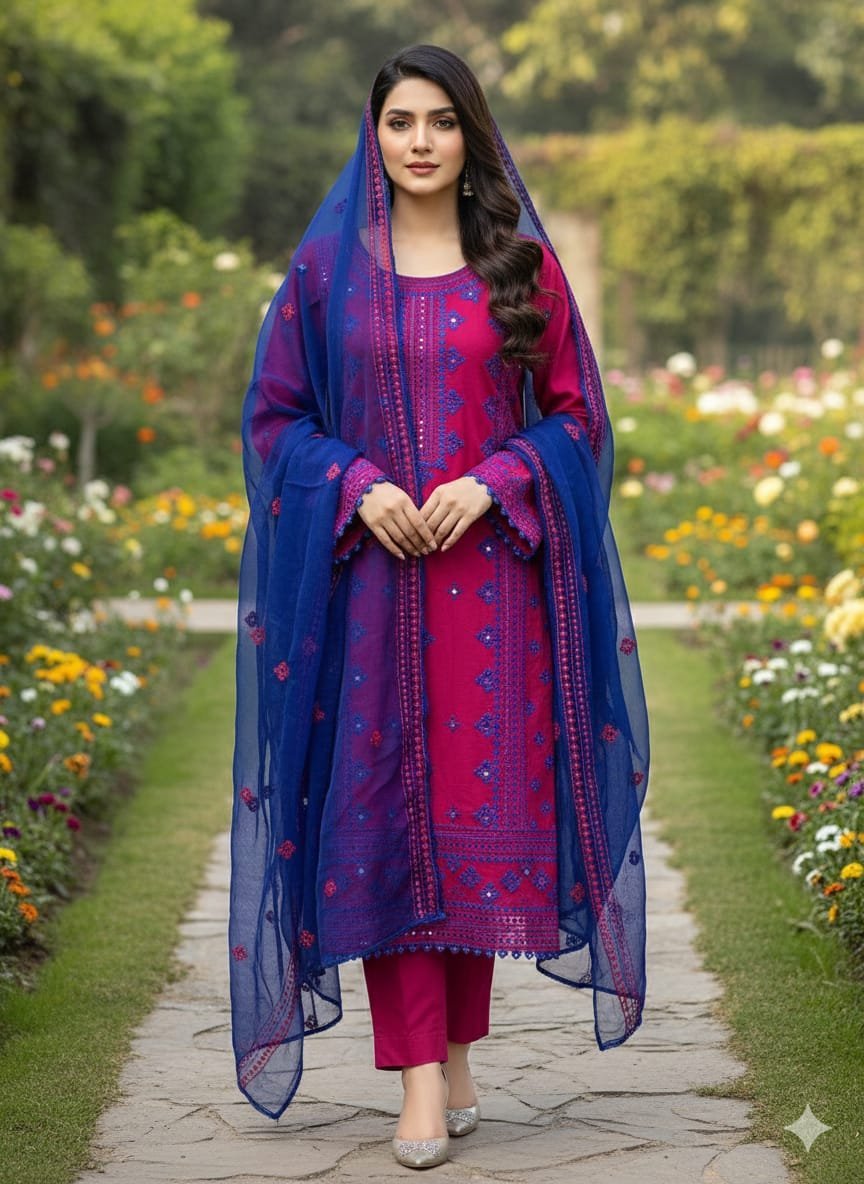 Embroidery Sindhi Stuff Lawn Cotton 3PC