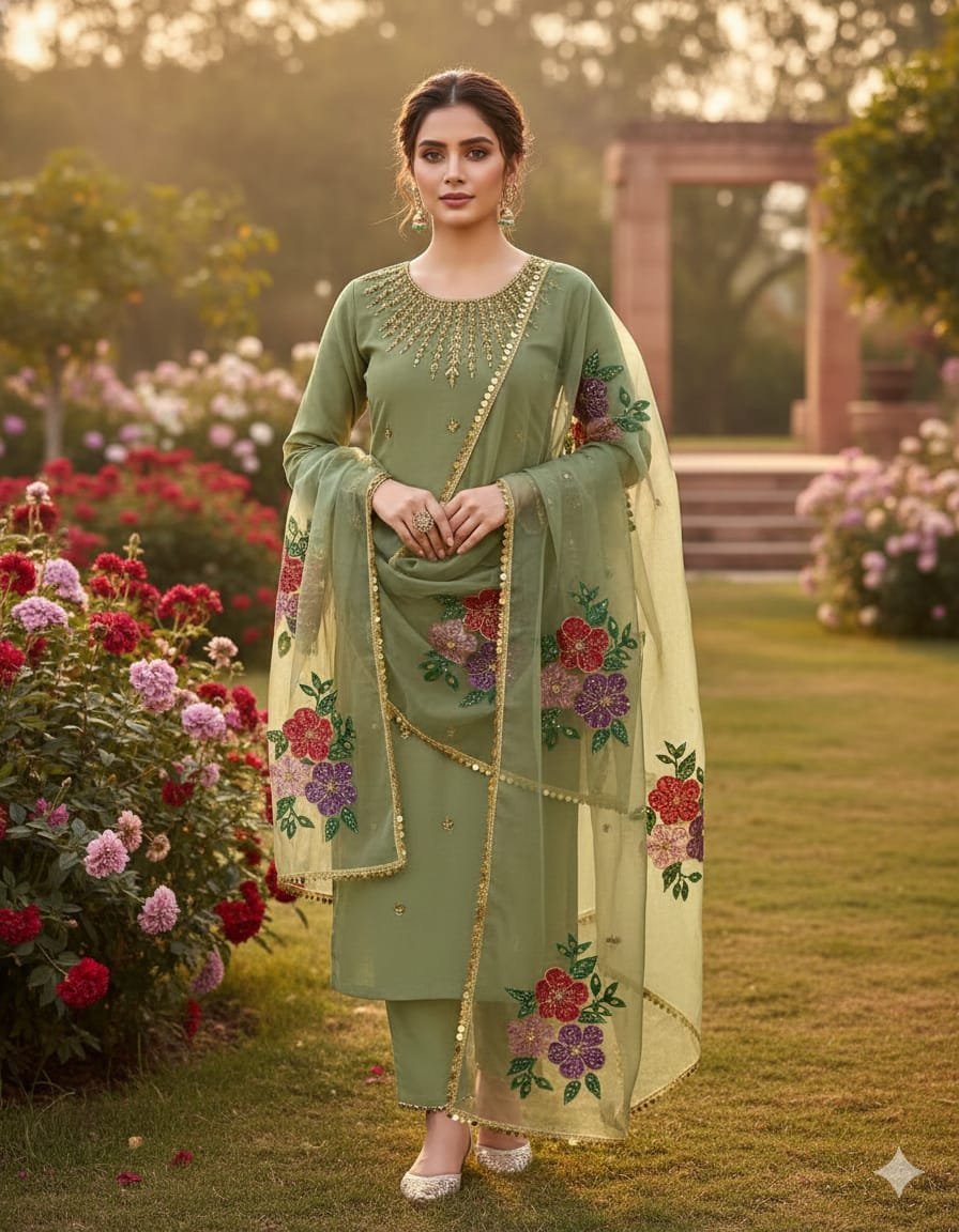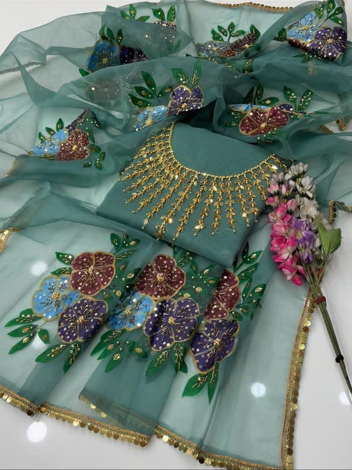 - 🌸 Oil Paint Organza Dupatta with handwork zari & beads
