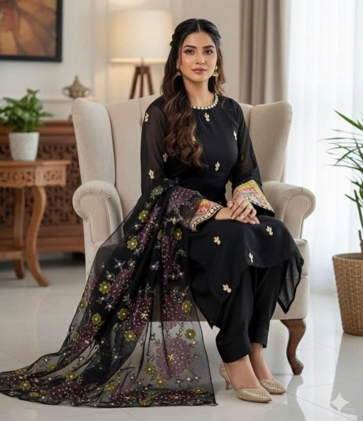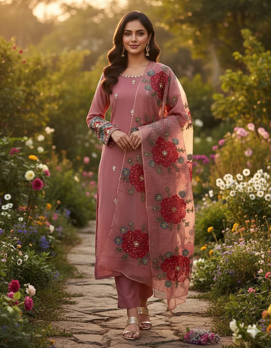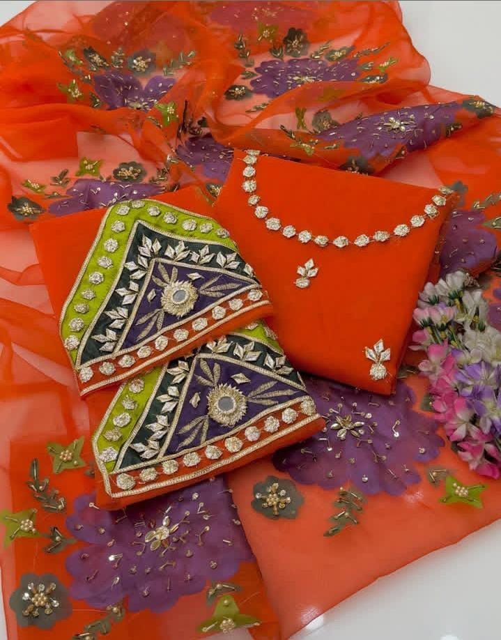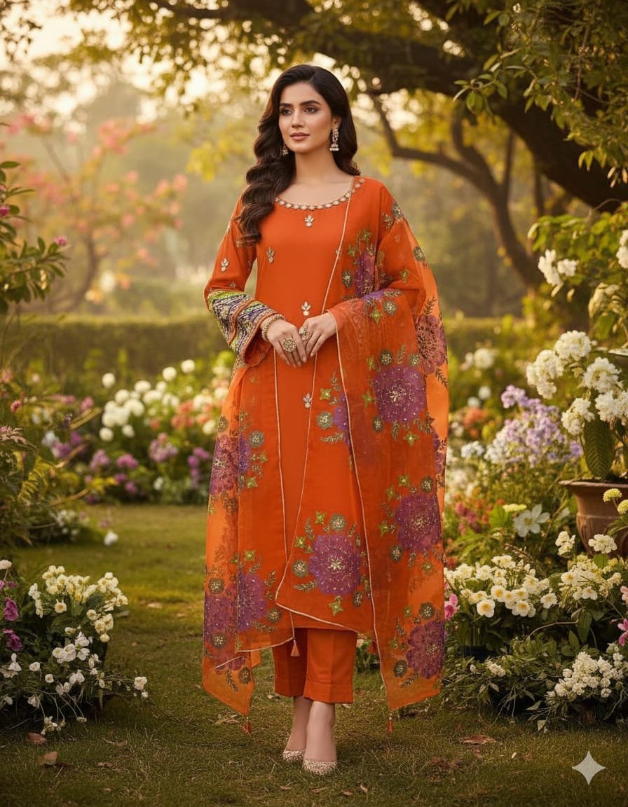Premium pure organza shirt adorned with exquisite handmade LCD gotta work