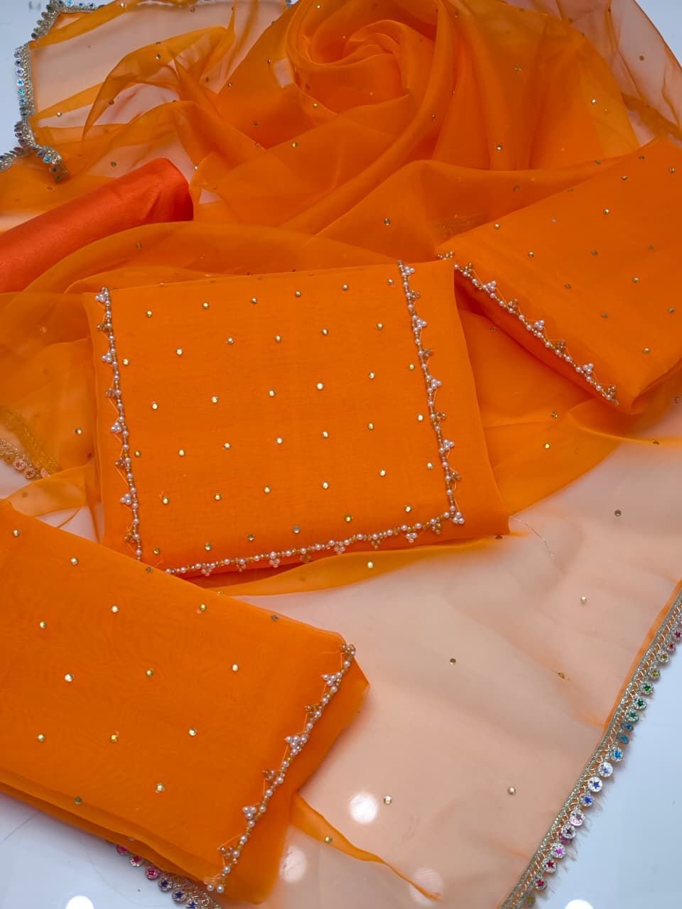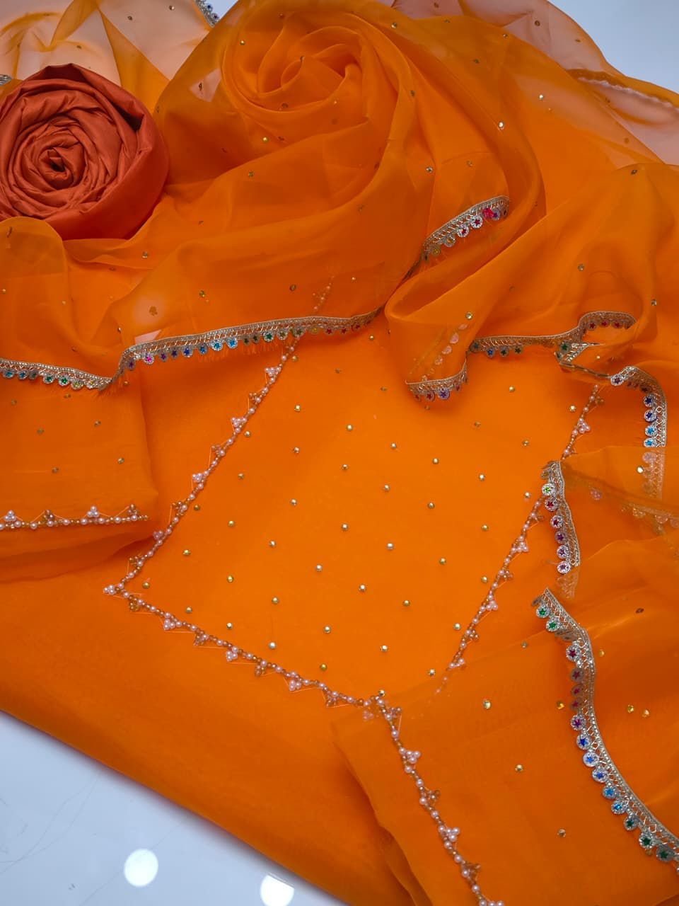 - 🌟 Dupatta – Organza with Kundan Work