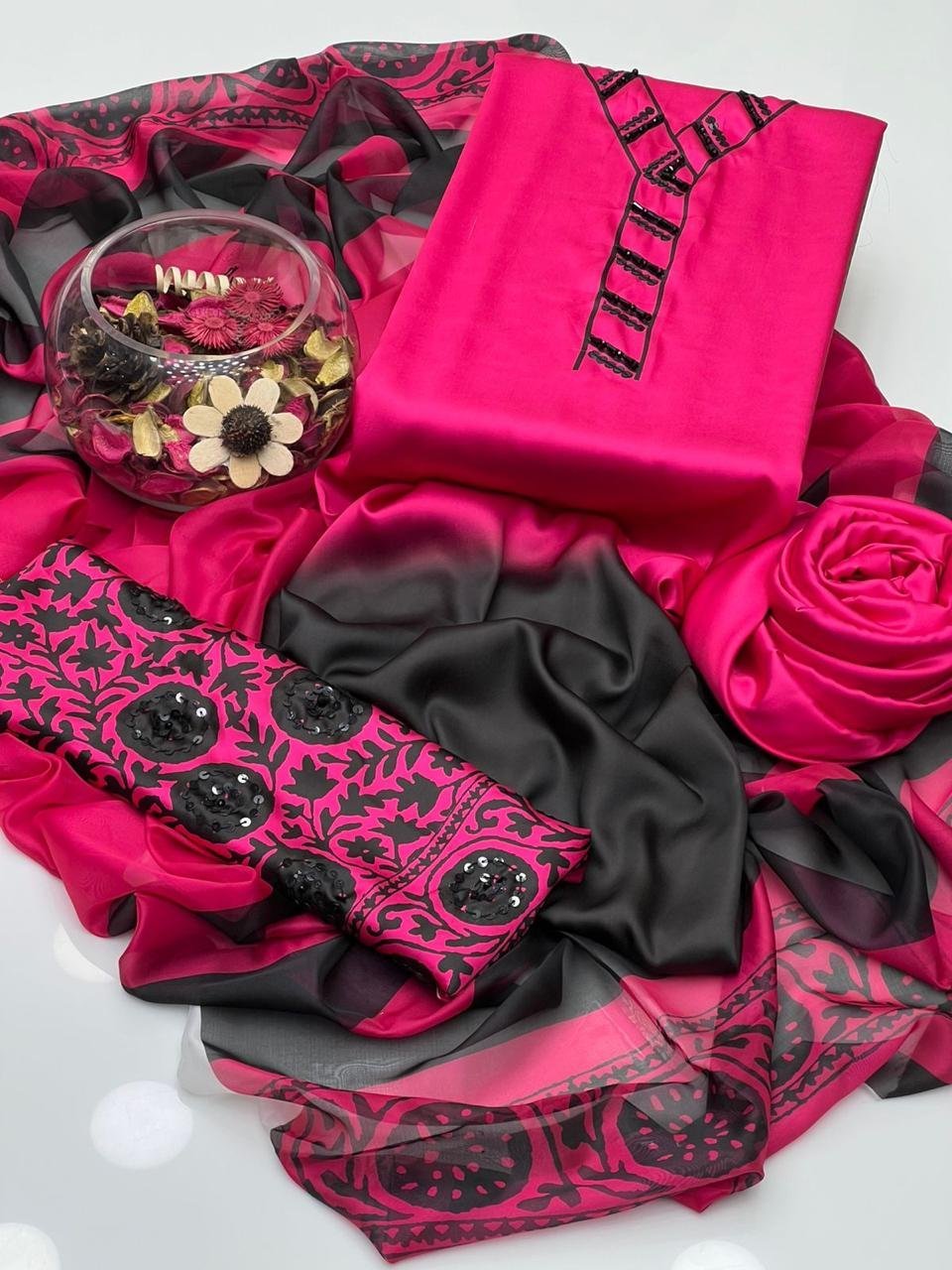 Premium Shamoze Silk 3-Piece Suit with Handwork Neck & Digital Print Dupatta