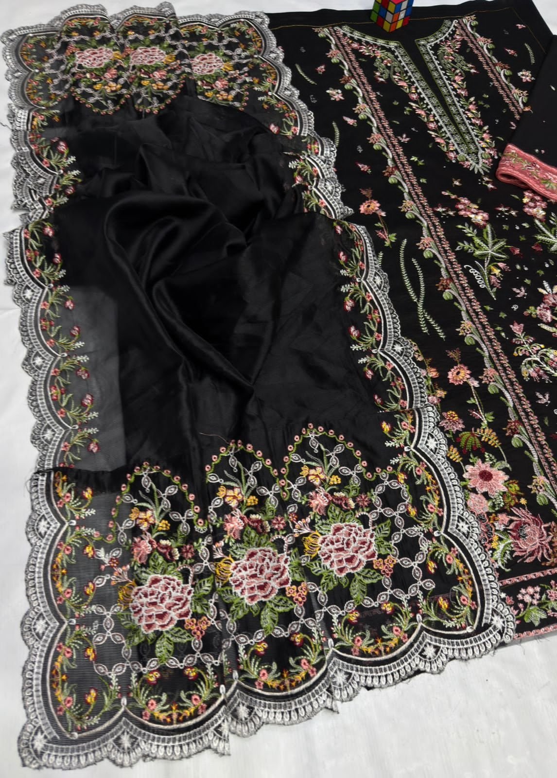 Pure Airjet Lawn 3PC Suit with Heavy Embroidery & Khaadi Net Dupatta