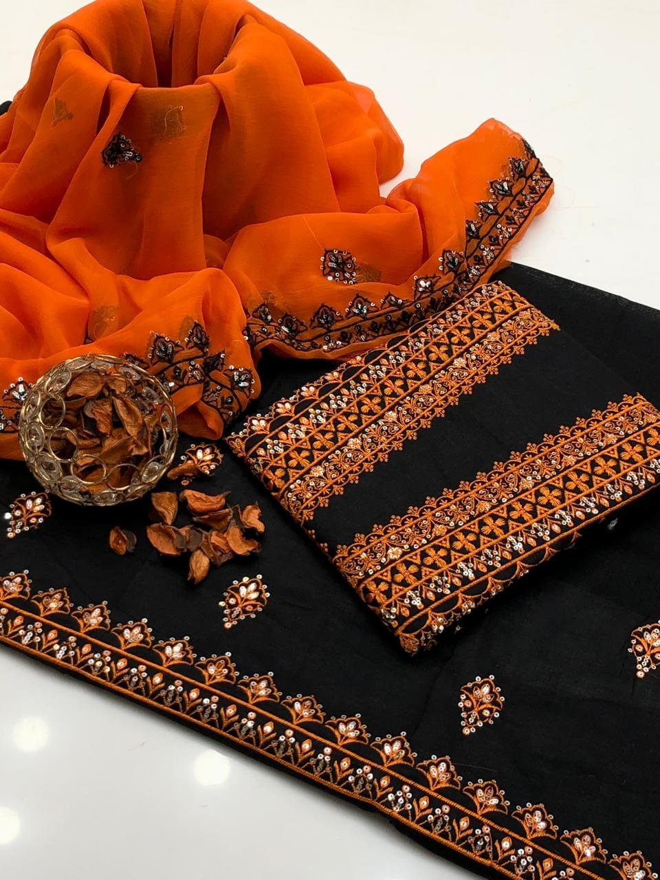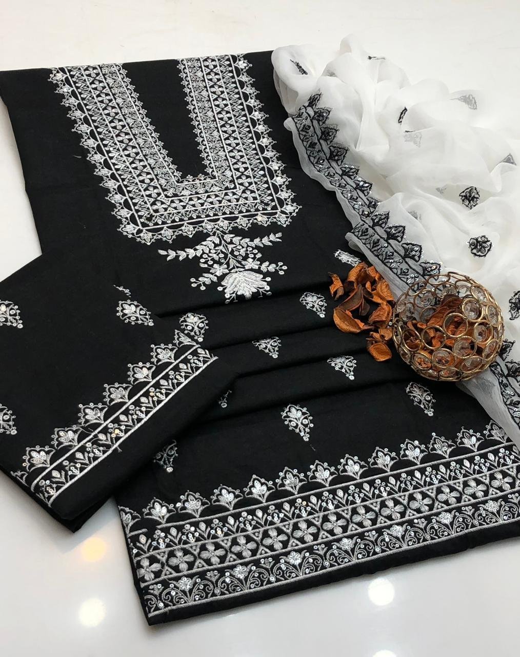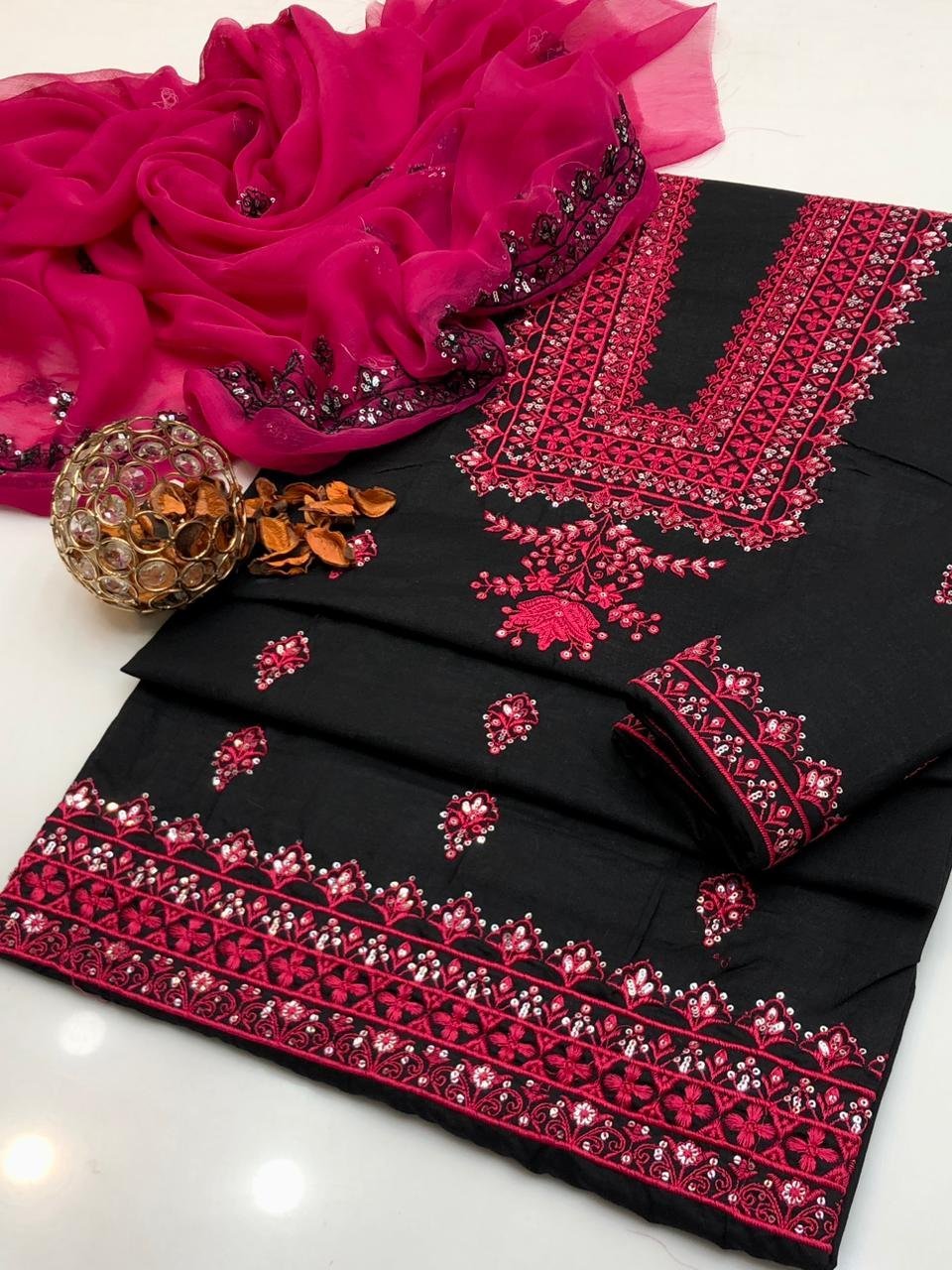- 🧣 Chiffon Dupatta with 3mm Sequence Embroidery – graceful & lightweight finish