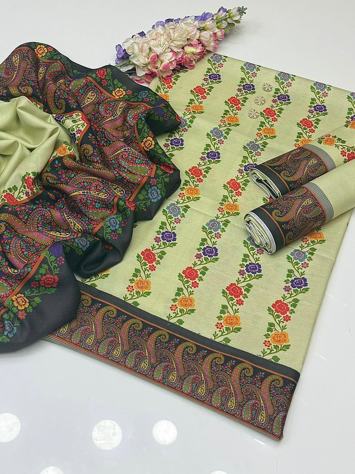 Soft Karandi 3-Piece Digital Print Suit